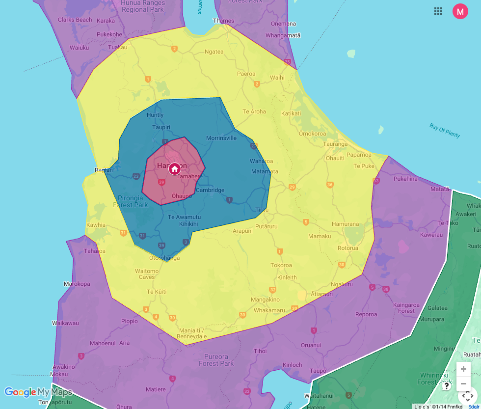 Travel charges apply for locations outside of the Hamilton City boundary.